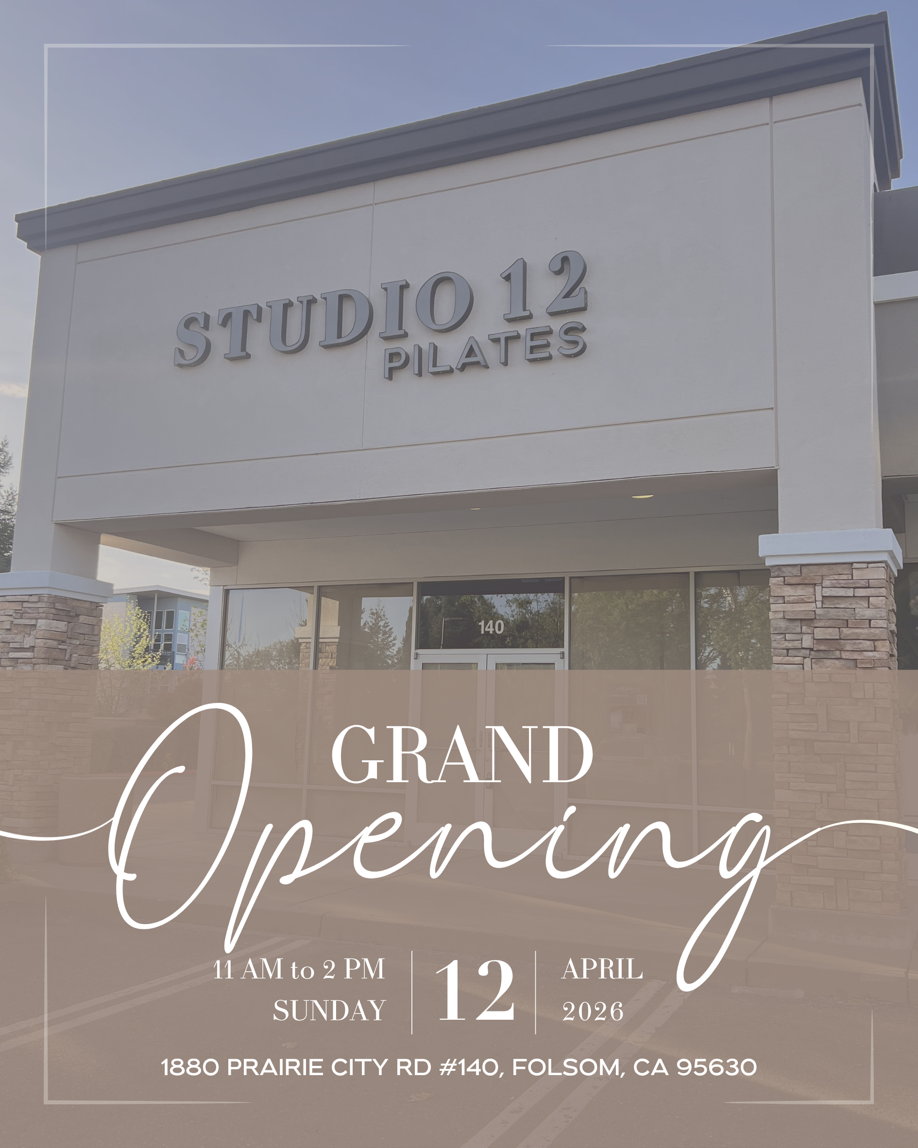 Join us on Sunday, April 12th from 11 AM to 2 PM as we celebrate the grand opening of Studio 12 Pilates with an elevated, brunch-inspired event. Enjoy a thoughtfully curated experience featuring light bites, matcha, music, a permanent jewelry pop-up, and exclusive giveaways and raffle prizes.